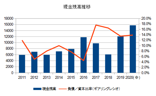 (負債(=ギアリングレシオ)は少ない。)